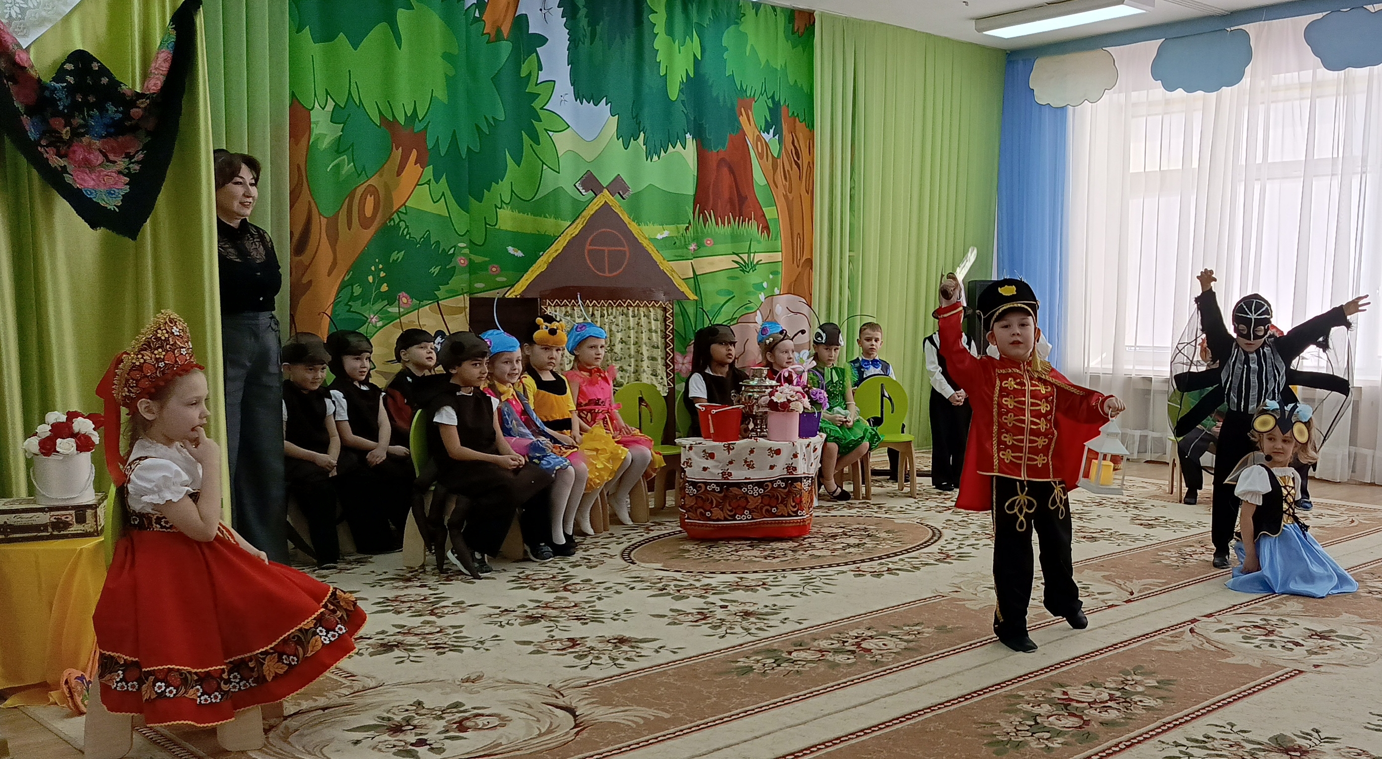 Музыкально-драматические спектакли «Петушок и бобовое зёрнышко» https://vk.ru/wall-212598621_8867 (группа «Следопыты», дети от 4 до 5 лет, воспитатель Г.Х. Хабибуллина) и «Муха-цокотуха» (группа «Карапузы», воспитатель Л.С. Бадретдинова), «Петушок-золотой гребешок» https://vk.com/ds33_surgut?z=video-212598621_456240289%2Fd7bda1819e142c80b7 (группа "Здоровячки", воспитатели Н.В. Губина и С.В. Захаренко) заворожили зрителей - и взрослых, и детей - своей музыкальностью. Дети в красивейших костюмах не только играли роли, но и танцевали. Спасибо за помощь в постановке музыкальных номеров учителю Н.В. Харрасовой.
